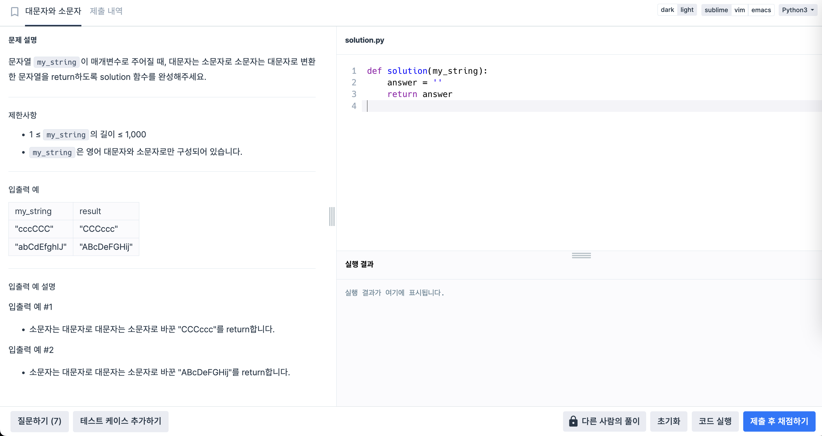 | 문자열의 대문자는 소문자로, 소문자는 대문자로 변경 |